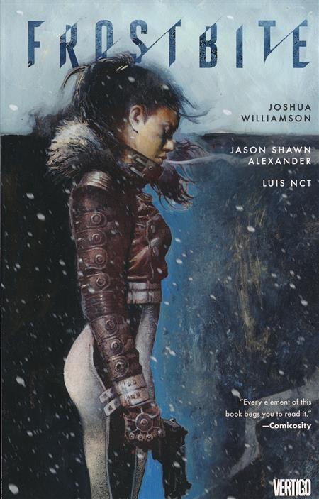 After Earth's second ice age, heat is power and brutal gangs roam the icy wasteland. If that wasn't enough, a terrible disease called 'Frostbite' is literally freezing people from the inside out. Once you catch it, the effect is instantaneous. There is no immunity, there is no cure. Until now. Doctor Henry Bonham and his daughter Victoria have found the key to ending Frostbite. If they can get from Mexico City to a secret government outpost in Alcatraz, they could stabilize life across the globe. But to do that they'll need to stay alive. That's where Keaton comes in. She and her crew have faced worse journeys before, but never with the potential consequences this one poses if they fail. Collects FROSTBITE #1-6.