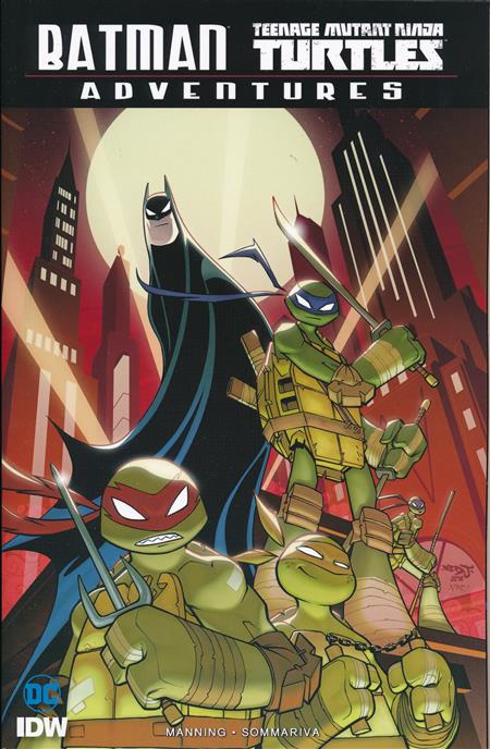 (W) Matthew K. Manning (A/CA) Jon Sommariva The animated worlds of the current Teenage Mutant Ninja Turtles Nickelodeon cartoon and Batman: The Animated Series collide in this outstanding mini-series featuring fan-favorite characters from both universes! Villains start to mysteriously escape Arkham and Batman seeks to track them down, but he discovers that they have left Gotham completely... and gone to the New York City of the Teenage Mutant Ninja Turtles! • The first Batman: The Animated Series new material since 2004 when The Batman Adventures concluded. • 'If you like the animated Batman and Ninja Turtles series, this is the book for you. It's great for all-ages, an easy introduction to both universes, and overall just a fun time.' - Batman-news.com • 'Batman/Teenage Mutant Ninja Turtles Adventures is the most fun you'll have reading a comic book…' - Comicosity.com • 'Fans of both franchises will absolutely flip over it…' - GeekedOutNation.com • 'Answers so many of the 'wouldn't it be cool if' type questions that fans have been talking about for decades.' -OutrightGeekery.com