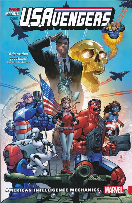 In a world beset by danger, the United States of America needs heroes they can rely on. Welcome to…American Intelligence Mechanics! A.I.M. will protect the nation from the wildest, weirdest threats of all! And the most patriotic super-group ever will do it all while looking tried and true in the red, white and blue! Can you live without…the U.S.Avengers? But when the Golden Skull launches his takeover bid, how will the team respond to the looming threat? With tuxedos. Really well-fitted tuxedos. It's socialism gone wild as the U.S.Avengers literally punch the business leaders of tomorrow right in their faces! Plus: Monsters galore - including Red Hulk! American Kaiju! Vandoom! And, would you believe, Dedd-Puul, the Mercenary That Walks Like a Man?! But when Steve Rogers gets serious, so must A.I.M. Where does that leave Roberto Da Costa? Collecting U.S.AVENGERS #1-5. Rated T+