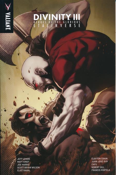 Not a dream... Not an alternate reality... This is the Valiant Universe of today... The world has gone red and Valiant's leading legends - Bloodshot, X-O Manowar and Shadowman - now stand at the forefront of the global Soviet war machine Meanwhile, the conspiracy-smashing duo of Archer & Armstrong find themselves condemned as enemies of the state and sentenced to life in the deadliest prison known to man. Torn from the pages of DIVINITY III: STALINVERSE, come four essential tales chronicling the history that has reordered the Valiant Universe as we know it, from acclaimed writers Jeff Lemire (Bloodshot Reborn), Joe Harris (Snowfall), Scott Bryan Wilson (Batman Annual), Eliot Rahal (The Paybacks) and all-star artists Clayton Crain (4001 A.D.), CAFU (Rai), Robert Gill (Book of Death), and Francis Portela (Faith). Collecting DIVINITY III: KOMANDAR BLOODSHOT #1, DIVINITY III: ARIC, SON OF THE REVOLUTION #1, DIVINITY III: SHADOWMAN AND THE BATTLE FOR NEW STALINGRAD #1, and DIVINITY III: ESCAPE FROM GULAG 396 #1.