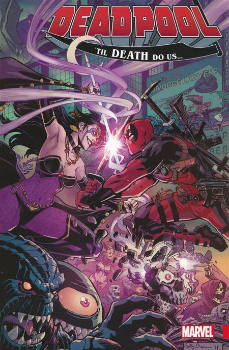 You've never seen marital problems like this! It was a whirlwind romance - Deadpool traveled across the world with Shiklah, fighting all sorts of threats at her side and finally married her as a way to thwart the evil vampire lord Dracula! But the honeymoon is over, and reality has set in. Wade's bride is a demon succubus, the queen of a monstrous kingdom hidden beneath Manhattan. So when this monster metropolis declares war on the surface world, Deadpool's loyalties are divided between his husbandly duties and the role he's crafted for himself as a hero. Can Spidey and the Mercs for Money help him decide whose side he's on? Brace yourself for a domestic dispute that's really going to break some things up! Collecting DEADPOOL (2015) #28-29, DEADPOOL & THE MERCS FOR MONEY (2016B) #9-10 and SPIDER-MAN/DEADPOOL #15-16. Parental Advisory