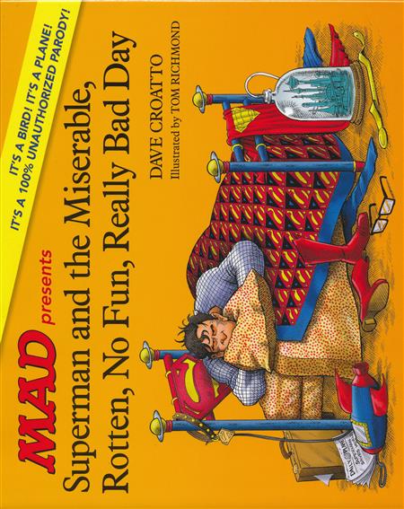 (W) Dave Croatto (A/CA) Tom Richmond It's a bird! It's a plane! It's the worst day ever! It's a 100% UNauthorized children's book parody as only MAD Magazine can do it in SUPERMAN AND THE MISERABLE, ROTTEN, NO FUN, REALLY BAD DAY! It's a day so terrible that only the Man of Steel could possibly hope to survive it! On this miserable, rotten, no fun, very bad day, Superman will face rampaging super-villains, angry editors, boring chores, a cranky Justice League and, worst of all, bad pizza. Superman's home planet, Krypton, exploded - so he's no stranger to bad days-but even so, this is one for the record books! In this all-new story from the Usual Gang of Idiots at MAD Magazine (the same crew that brought you GOODNIGHT, BATCAVE) the best-selling children's book Alexander and the Terrible, Horrible, No Good, Very Bad Day is parodied with the heroes and villains from the world of DC Comics' Superman!