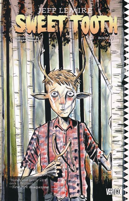 In these stories from SWEET TOOTH #1-12, meet Gus, a rare breed of human/animal hybrid who was raised in isolation following a pandemic. Now, with the death of his father, he's left to fend for himself - until he meets a drifter named Jepperd, who promises to help him. Jepperd and Gus set out on a post-apocalyptic journey into the devastated American landscape to find 'The Preserve,' a refuge for hybrids. Find out what happens when Gus is held captive with other hybrids in a camp where he meets a scientist studying the plague that's wiped out so much of the world.