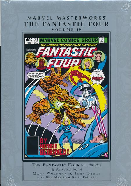 In their latest, greatest Marvel Masterworks, the Fantastic Four confront one of their oldest enemies: the Skrulls! And they'll have to do it as their older selves after an aging weapon advances them to death's door! The talents of Marv Wolfman, Keith Pollard and John Byrne - in his FF debut - keep the story feisty, the art spry and the adventure fantastic. How could it not be when the world-devourer Galactus enters the fray with a new herald? As if that weren't enough, the cosmic Sphinx, scheming Monocle, combustible Blastaar, formidable Frightful Four and diabolical Salem's Seven keep the scope epic, the stakes absolute and you on the edge of your seat! And H.E.R.B.I.E.? He's just keeping it real. Collecting FANTASTIC FOUR (1961) #204-218 and ANNUAL #14. Rated T