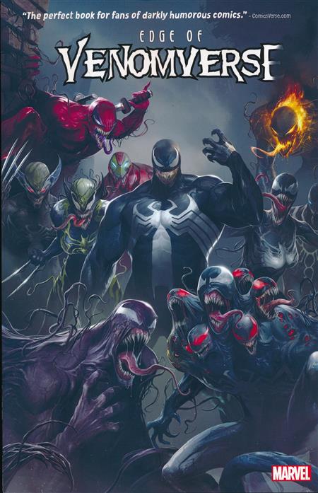Before VENOMVERSE, there is EDGE OF VENOMVERSE! It's a symbiotic smorgasbord of stories, each featuring a major character becoming Venomized - all destined to feed into the main event itself! When the young mutant clone designated X-23 bonds with an alien parasite, can she hold it together - or is she doomed to give in to bloodlust? It's a nightmare in pink when Gwenpool turns into a sword-slinging, web-swinging master of disaster! Robbie Reyes becomes the symbiotic spirit of vengeance, the Host Rider! Years in the future, meet the lethal Wolvenom in a terrifying tale set after the epic events of the original OLD MAN LOGAN! And when Deadpool bonds with Venom, just call him the Symbiote with the Slobber! Plus: War stories featuring Venomized versions of Punisher, Rocket Raccoon and more! Collecting EDGE OF VENOMVERSE #1-5 and VENOMVERSE: WAR STORIES #1. Rated T+