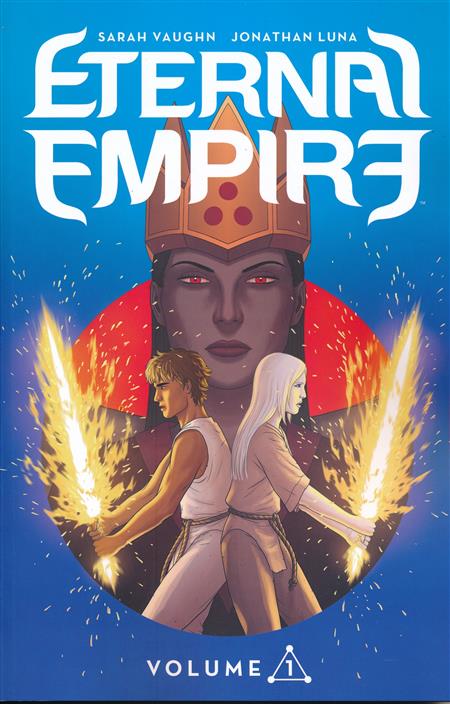 JONATHAN LUNA (ALEX + ADA, THE SWORD, Spider-Woman: Origin) and SARAH VAUGHN (ALEX + ADA, Deadman: Dark Mansion of Forbidden Love, Ruined) team up again with ETERNAL EMPIRE, a fantasy epic! The Eternal Empress has waged war against the countries of Saia for over 100 years, and now her sights are set on the last country standing. But within the brutal Empire's workforce, a young man and woman discover they share a synergistic power that could change the fate of the entire world.