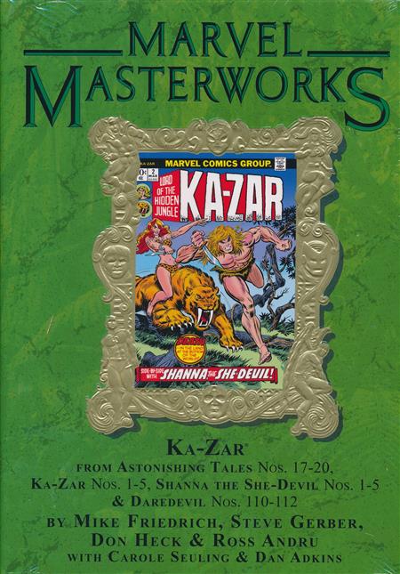Ka-Zar meets Shanna for the first time in this massive Marvel Masterworks! Two heroes from separate walks of life - but it was inevitable that their paths would cross deep in the jungle after both rejected the modern world. But first, Ka-Zar must conquer a madman powered by Super-Soldier serum, the twin villain Gemini, and his own brother, the Plunderer - while Shanna hunts her father's killers, explores the jungle's mysteries, and battles the Mandrill and priestess Nekra! As their paths diverge, Ka-Zar encounters an evolved incarnation of a Savage Land nemesis in adventures with Bobbi Morse, the S.H.I.E.L.D. agent known as Mockingbird! Meanwhile, Daredevil helps Shanna complete her quest to avenge her father! Collecting ASTONISHING TALES (1970) #17-20, KA-ZAR (1974) #1-5, SHANNA THE SHE-DEVIL (1972) #1-5, DAREDEVIL (1964) #110-112, and material from DAREDEVIL (1964) #109 and MARVEL TWO-IN-ONE (1974) #3. Rated T