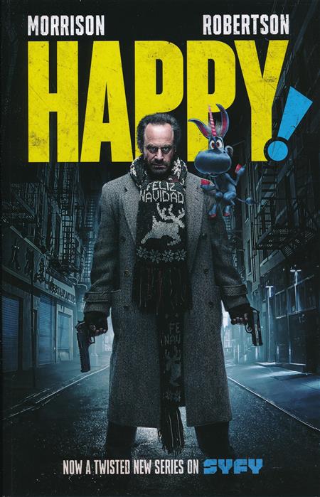 (W) Grant Morrison (A) Darick Robertson (CA) Photo Meet Nick Sax: a corrupt, intoxicated ex-cop turned hit-man, adrift in a stinking twilight world of casual murder, soulless sex, eczema, and betrayal. With a hit gone wrong, a bullet in his side, the cops and the mob on his tail, and a monstrous child killer in a Santa suit on the loose, Nick and his world will be changed forever this Christmas by a tiny blue horse called Happy... Re-presented as an oversized hardcover just in time for the holidays, this deluxe edition of HAPPY! includes an all-new 10-page story by creators GRANT MORRISON and DARICK ROBERTSON. Collects HAPPY! #1-4