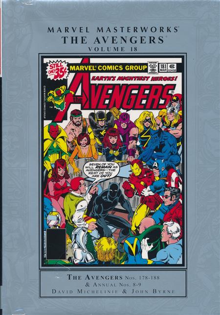 Avengers Mansion is running out of room, so the old order changeth! Government agent Henry Peter Gyrich is kicking out all but seven Avengers. Despite their protests, the team won't have time to argue - because a mysterious man from Quicksilver and the Scarlet Witch's past has emerged, kicking off an adventure that leads the Avengers to Wundagore Mountain and reveals the answer to one of Marvel's oldest mysteries! But first, the Absorbing Man shows up for a good ol' fashioned knuckle-crunching battle! Also featuring a trip to the Inhumans' Great Refuge, an all-new Doctor Spectrum in a story illustrated by George Pérez, solo Beast and Falcon adventures and the massive mountain-menace Monolith! Brought to you by Avengers greats David Michelinie and John Byrne! Collecting AVENGERS (1963) #178-188 and ANNUAL #8-9, MARVEL PREMIERE #49 and material from MARVEL TALES (1966) #100. Rated T