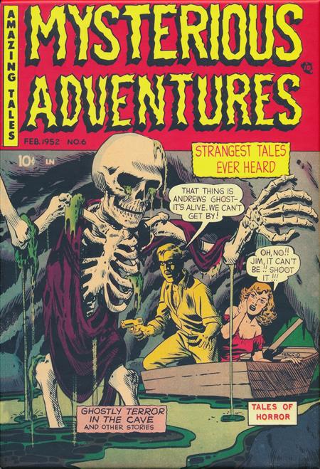 Synopsis: STORY COMICS - MYSTERIOUS ADVENTURES VOL 1: ISSUE 1 - 6 March 1951 to February 1952 Special Notes: And further proof how much we loves ya, here's the first six-comic volume in the complete series of MYSTERIOUS ADVENTURES, a raft of freaky fables including this cautionary yarn when adventurer David Murstone crashes in the jungle and is severely injured. Jivaro goddess Konocry saves his life by letting him drink from the 'Pool of Eternity' and thus giving him immortality. The Jivaro tribe disagrees with her action and tortures the couple. Since they cannot die, they have to endure eternity as shrunken heads. Hey, bummer, kids! Not gonna look too good on your passport page!