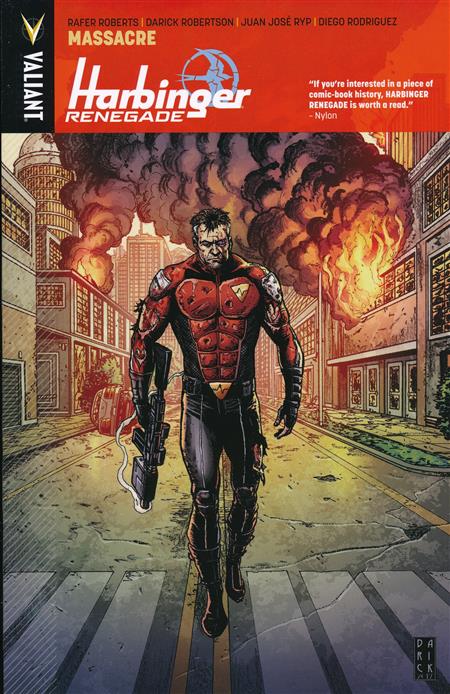 'Massacre' brings death to a major Valiant hero! Toyo Harada's former protege - Alexander Solomon, a 'psiot' with the ability to predict and analyze potential futures - has been waiting for this moment. With the Harbinger Renegades - Peter Stanchek, Faith, Kris Hathaway, and Torque - now reunited as a result of his covert manipulations, his ultimate gambit can now begin. But he's not the only one who has been watching. Major Charlie Palmer has just re-assigned a new division of the militarized psiot hunters codenamed H.A.R.D. Corps to active duty…and they're about to bring a torrent of blood and calamity roaring into the streets of a major American metropolis for an all-out Firefight. The Harbinger Renegades. Livewire. Alexander Solomon. Generation Zero. Toyo Harada. Secret Weapons. Imperium. None of them are safe…and, when the smoke clears, a pivotal Valiant hero will become the first sacrifice of the massive Harbinger War that is to come… Harvey Award-nominated writer Rafer Roberts (Plastic Farm) and superstar artist Darick Robertson (The Boys, Transmetropolitan) begin THE ROAD TO HARBINGER WARS 2 - right here with a bang that will reverberate throughout the entire Valiant Universe…and claim the life of a major hero! Collecting HARBINGER RENEGADE #5-#8.