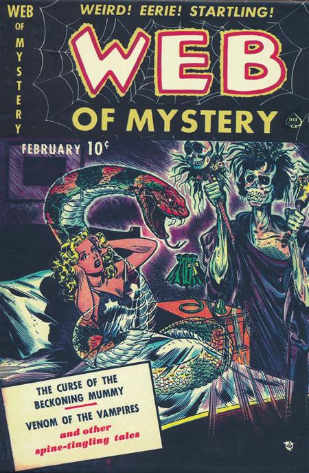 And here comes the first volume of Ace Comics' Web of Mystery. Come put your little clawed and emaciated hand in ours-we'll look after you. Ignore the darkness and the cemetery mist creeping through the Graveyard Gates, and ignore the fact that the flesh seems to have slipped from your face. No matter, for this is comicbooks the way they were and should always be. Collects issues #1-6 (February 1951 to December 1951).