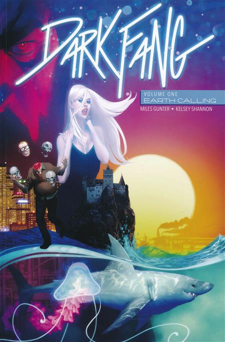 Her name is Valla. She is a vampire who has resided on the bottom of the ocean for a century. When her aquatic paradise is destroyed by a dark liquid plague, she travels to the surface in search of answers. What she finds is a world threatened by climate change and a civilization powerless to stop it. Eventually, mankind will be wiped out, and Valla will have no food supply. If she is to survive, then the fossil fuel industries must fall. Image Comics presents the first volume in the ecological action horror thrill ride by MILES GUNTER and KELSEY SHANNON. Collects DARK FANG #1-5.