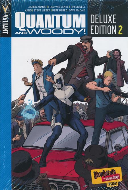 Join Multiple Harvey Award nominee James Asmus (Thief of Thieves), New York Times best-selling writer Fred Van Lente (IVAR, TIMEWALKER), Eisner Award-winning artist Steve Lieber (Superior Foes of Spider-Man), and explosive artist Kano (Daredevil) for the next deluxe hardcover of the superhero joyride Salon calls 'one of the year's funniest comics'! Quantum and Woody are the world's worst superhero team. Archer & Armstrong are a mismatched pair of conspiracy-busting adventurers. When a mysterious force collides with these ill-suited and irresponsible 'heroes,' they're in for a cross-country race through the darkest corners of American mythology… and all hell is bound to break loose. Can two busted pairs become four of a kind in time to defeat the Hobo King, save the day, and make it back home for happy hour? Let's hope so...'cause these guys make a really, really bad team. (And you don't even want to know about the goat.) Collecting THE DELINQUENTS #1-4, QUANTUM AND WOODY MUST DIE! #1-4, VALIANT-SIZED QUANTUM AND WOODY #1, and UNITY #25, along with 20+ pages of rarely seen art and extras!