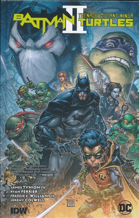 While the Shredder is locked away at Riker's Island, the Foot Civil War rages through New York City. Each branch of the Foot is determined to kill the Turtles first, to prove their rightful claim to power. Meanwhile, Batman and Robin are back in the DC Universe, dealing with the repercussions of a massive Arkham Asylum breakout that freed Bane! When Bane is unexpectedly transported to the Turtles' New York City, he swiftly takes control of the town, and Batman and the Turtles must join forces to defeat their common enemy! Collects #1-6.