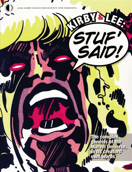 For its 75th issue, the Jack Kirby Collector magazine presents this first-of-its-kind examination of the creators of the Marvel Universe, in an oversize book! It looks back at their own words, in chronological order, from fanzine, magazine, radio, and television interviews, to paint a picture of Jack Kirby and Stan Lee's relationship, why it succeeded, where it deteriorated, and when it eventually failed. Also here are recollections from Steve Ditko, Wallace Wood, John Romita Sr., and more Marvel Bullpen stalwarts who worked with both Kirby and Lee. Rounding out this book is a study of the duo's careers after they parted ways as collaborators, including Kirby's difficulties at Marvel Comics in the 1970s, his last hurrah with Lee on the Silver Surfer Graphic Novel, and his exhausting battle to get back his original art - and creator credit - from Marvel.