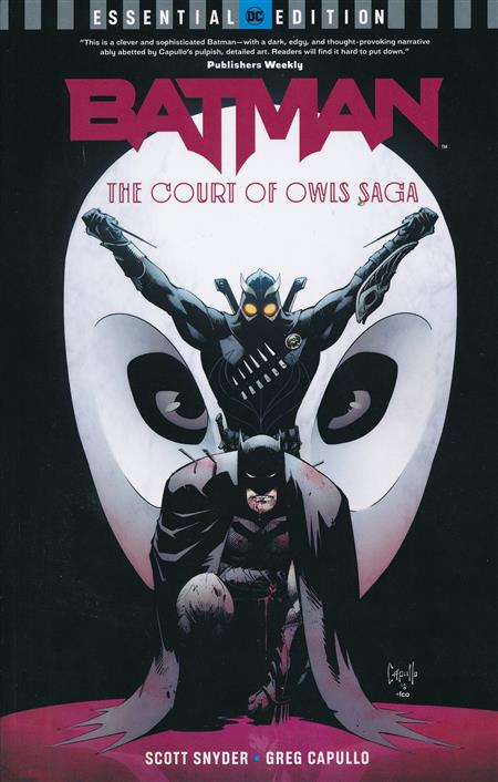The DC Essential Edition series of graphic novels highlights the best standalone stories the medium has to offer, featuring comics' greatest characters. Hidden for years, the mysterious Court of Owls surfaces in Gotham City-what must Batman do to defeat them, and what deadly connection do they have to his past? Scott Snyder and Greg Capullo's masterpiece epic is collected in its entirety in trade paperback for the first time ever! Collects issues #1-11 of BATMAN as well as bonus material including sketches, scripts, design concepts and variant covers.