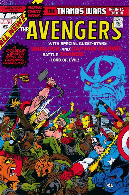 Before he eradicated half the Marvel Universe, Thanos fought his first Infinity Wars against Captain Marvel, Adam Warlock and the mighty Avengers! From the mind of the incomparable Jim Starlin, these epic battles redefined the cosmic stakes for Marvel's heroes and imbued Thanos with an existential spirit and cosmic scope that made the Mad Titan as compelling as he was dangerous! In this beautifully restored Omnibus edition, experience the first appearances of Thanos, Drax and Gamora; the initial assembling of the Infinity Gems; the re-invention of Captain Marvel and more! Collecting IRON MAN (1968) #55, CAPTAIN MARVEL (1968) #25-34, MARVEL FEATURE (1971) #12, AVENGERS (1963) #125, STRANGE TALES (1951) #178-181, WARLOCK (1972) #9-15, MARVEL TEAM-UP (1972) #55, AVENGERS ANNUAL #7, MARVEL TWO-IN-ONE ANNUAL #2, MARVEL GRAPHIC NOVEL #1 and material from DAREDEVIL (1964) #105 and LOGAN'S RUN #6. Rated T