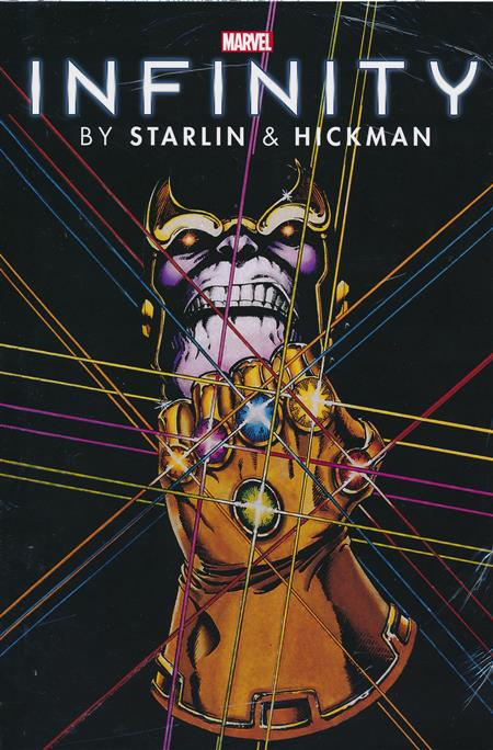 From the epic that began it all to the blockbuster event to end all blockbuster events! For Thanos, the Infinity Gauntlet is the ultimate prize. With it comes omnipotence: absolute control of time, space, power, reality, the mind and the soul. On the edge of armageddon and led by the mysterious Adam Warlock, Earth's super heroes join in a desperate attempt to thwart one nihilistic god's insane plunge into galactic self-destruction. Years later, Thanos makes a world-shattering return, seeking to claim Earth while the Avengers are caught in a war in deep space! Galactic empires will fall as his crazed plans come to fruition! From the cosmic minds of Jim Starlin and Jonathan Hickman come the bookend chapters of the Mad Titan's quest for Infinity! Collecting INFINITY GAUNTLET (1991) #1-6, INFINITY #1-6, NEW AVENGERS (2013) #7-12 and AVENGERS (2012) #14-23. Rated T+