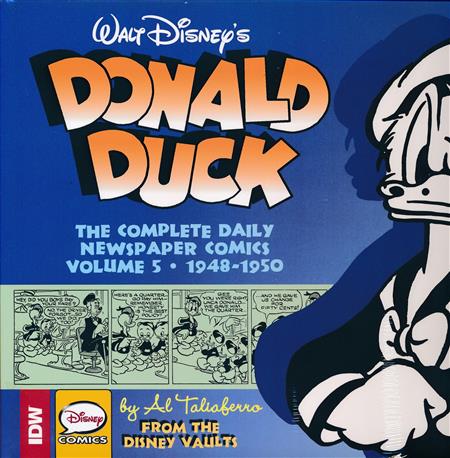 From the Disney Vaults! The original Donald Duck daily strips, collected for the first time ever! This fifth volume includes 750 sequential daily comic strips from January 1, 1948, through the middle of 1950 drawn by Al Taliaferro and reproduced from original material in the Disney files! It's time to laugh again with Donald, Daisy, and those impetuous nephews: Huey, Dewey, and Louie. Advance solicited for March release! Donald's daily adventures collected in their entirety for the first time!