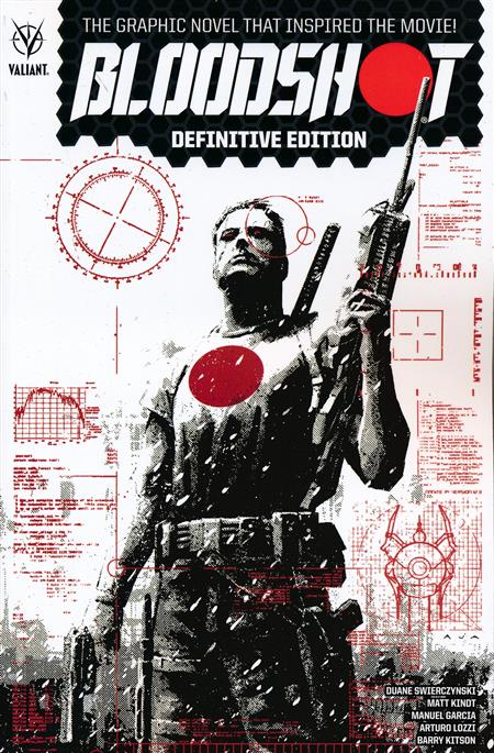 Before Vin Diesel's BLOODSHOT hits the silver screen in 2020, experience the hit series that debuted Valiant's nanite-enhanced commando with this essential standalone volume! From acclaimed writer Duane Swierczynski (Birds of Prey) and all-star artists Manuel Garcia (Black Widow), Barry Kitson (The Amazing Spider-Man), Arturo Lozzi (Immortal Weapons), and Matthew Clark (The Adventures of Superman), the BLOODSHOT DEFINITIVE EDITION trade paperback collection re-presents the blockbuster first year of the breakout Valiant series behind the upcoming major motion picture from Sony! Collecting BLOODSHOT #0-13.