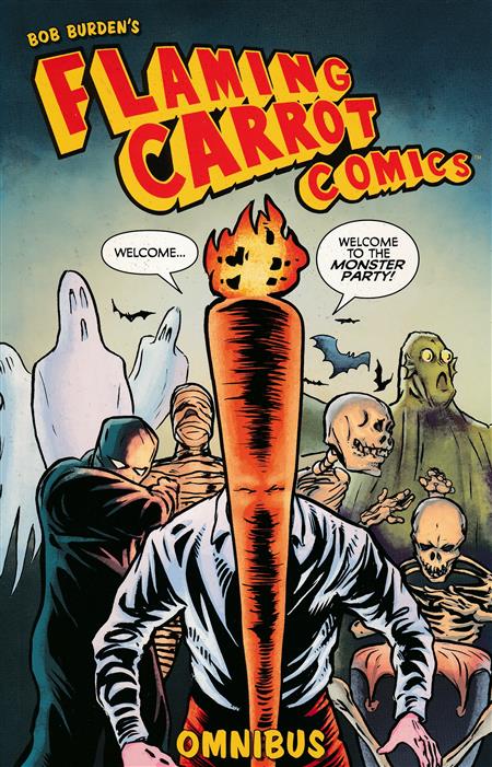 The Eisner Award-winning, surreal superhero series The Flaming Carrot, returns with a new omnibus collection! Check out a comic book series that for many years most people believed to be nothing more than a ridiculous legend or an amusing joke. Doctor recommended. Maximum strength formula. New hope for a nation suffocating in the swill of its own mediocrity. Collects Flaming Carrot #1-2, #4-11, #25-27. Featuring the crossover with the Teenage Mutant Ninja Turtles!