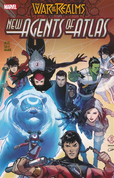 (W) Greg Pak (A) Lim, Gang Hyuk (CA) Billy Tan A new band of heroes unites to defend the Pacific Rim! As Sindr and her legions of Fire Demons march on Asia, can Amadeus Cho reassemble his ragtag 'Protectors' - Shang-Chi, Silk and Jimmy Woo - to once again save Earth from an alien invasion? Where is Kamala Khan? And just who are Crescent, Io and Luna Snow? Prepare to meet Marvel's newest heroes from China - Aero and Sword Master - and the mysterious new Filipina heroine named Wave! Together, they are all that stands between the Queen of Cinders and her ultimate goal: to melt the polar ice caps and turn all of Midgard into a sweltering new Muspelheim! Collecting WAR OF THE REALMS: NEW AGENTS OF ATLAS #1-4.