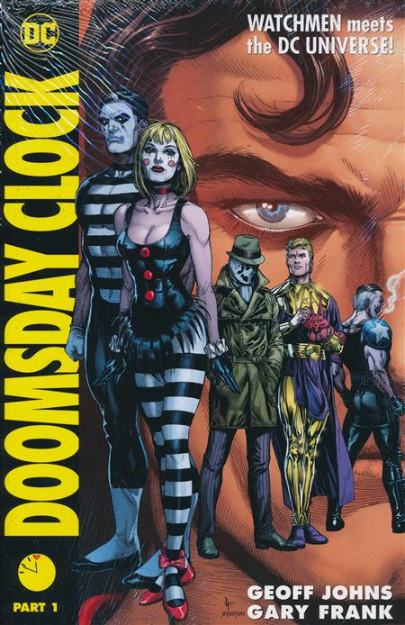 Something is amiss in the DC Universe. Following the events of DC Universe: Rebirth and Batman/The Flash: The Button, Geoff Johns and Gary Frank reunite to rewrite the past and future of the DC Universe in a story hailed as a masterpiece! Seven years after the events of Watchmen, Adrian Veidt has been exposed as the murderer of millions. Now a fugitive, he has come up with a new plan to save his once-adoring world: find Dr. Manhattan. Alongside a new Rorschach and the deadly Mime and Marionette, he arrives in the DC Universe and finds it on the brink of collapse. International tensions are running rampant with the Supermen Theory implicating the U.S. government in creating superhumans to maintain global dominance! But what is Dr. Manhattan doing in the DC Universe? Find out in these stories from DOOMSDAY CLOCK #1-6!