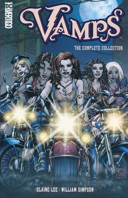 Meet Howler, Screech, Whipsnake, Skeeter, and Mink-five dangerously alluring female vampires thundering down America's highways on Harleys, drunk on freedom and high octane. After killing their male master, the Vamps set out on the open road in search of a new life. But Howler, their leader, is driven by a demon from her past...one that she must vanquish before she can truly enjoy the pleasures of an undead existence. Then, the Vamps go Hollywood as Mink tries to kickstart her movie career-but they soon run afoul of Screech's old flame, a movie mogul with a nasty secret. This new book collects both VAMPS #1-6 and the never-before-collected VAMPS: HOLLYWOOD AND VEIN #1-6 and VAMPS: PUMPKIN TIME #1-3 in a single volume for the first time, along with a treasure trove of bonus and behind-the-scenes material and a brand-new cover by original series artist Will Simpson!