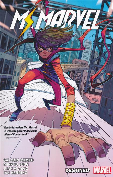 Ms. Marvel is back - and she's magnificent! But there's no such thing as business as usual in Jersey City. Aliens are wreaking havoc in Kamala's corner of the world, and they seem weirdly interested in Ms. Marvel…and her family! Kamala is about to face a devastating loss - but with an alien invasion ravaging her neighborhood, she won't have much time to grieve. Even if Kamala saves her hometown, will her life ever be the same? And what's all this business about a 'Chosen One'? Eisner Award winner Saladin Ahmed (BLACK BOLT, EXILES) and rising star Minkyu Jung take the reins of one of Marvel's most beloved young characters for the shocking start of an all-new era! Guest-starring the Invincible Iron Man! Collecting MAGNIFICENT MS. MARVEL #1-6. Rated T+