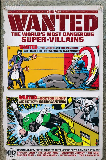 Take a journey into the dark minds of DC's most dangerous super-villains in these tales starring The Joker, the Mist, Captain Cold, Signalman, the Puppeteer, Clock King, Mr. Who and many more. Collects WANTED: THE WORLD'S MOST DANGEROUS VILLAINS #1-9 from 1972, which reprinted stories from ACTION COMICS #57 and 69; BATMAN #25, 84 and 112; WORLD'S FINEST COMICS #6 and 111; THE FLASH #114 and 121; ADVENTURE COMICS #72 and 77; GREEN LANTERN #1 and 33; WONDER WOMAN #36; SENSATION COMICS #66 and 71; MORE FUN COMICS #65, 73 and 76; FLASH COMICS #86, 90 and 100; ALL-AMERICAN COMICS #61; KID ETERNITY #15; and DOLL MAN QUARTERLY #15.
