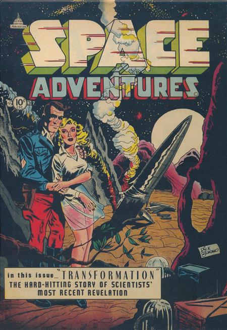 The second bumper-full line-up from Charlton Comics' fearsomely far out and appropriately titled other- worldly SPACE ADVENTURES comic from the 1950s has everything you could ever imagine! Featuring some of the earliest work of industry notables Steve Ditko, Dick Giordano and Tony Tallarico, plus Stan Campbell, Frank Frollo, Art Cappello, Vince Alascia and Seymour Moskowitz. If you're quick, you can probably fight off several groups of marauding aliens before your mum calls you in for supper.