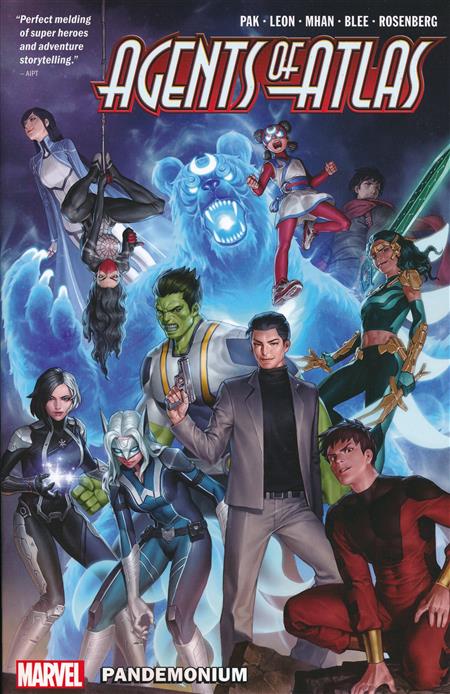 (W) Greg Pak, Jeff Parker (A) Nico Leon, Carlo Pagulayan (CA) Jung-Geun Yoon Asia's greatest heroes unite! By popular demand, the New Agents of Atlas return as Amadeus Cho, Silk, Shang-Chi, Wave, Jimmy Woo and all your favorites defend the cross-Asian portal city of Pan against the science/magic threat of one of Marvel's classic villains! It's timeless action as heroes from multiple lands clash with one another, battle horrific monsters side by side - and hopefully save the world along the way! But who is Isaac Ikeda, the Protector of Pan? And what does Mike Nguyen and the Big Nguyen company have planned for Pan? The newest Giant-Man, Raz Malhotra, joins the fun as the team goes big on action - and romance! But who's kissing whom? Plus: The original Agents of Atlas - Namora, M-11, Venus, Gorilla-Man, 3-D Man and Marvel Boy - reunite for a top-secret mission! Collecting AGENTS OF ATLAS (2019) #1-5.