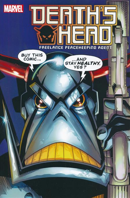 Meet one of Marvel UK's biggest stars - the robot for hire known as Death's Head! Just don't call him a bounty hunter, yes? Join the android assassin in this pulse-pounding collection of his original adventures, from distant dimensions to the far future. Death's Head has his sights locked on an array of enemies - and will encounter familiar faces, including the Fantastic Four, the Hulk, She-Hulk and Arno Stark, the ruthless Iron Man of the future! But are you ready for Death's Head's mind-bending origin? For that matter, is he?! Buy this book and stay healthy, yes? Collecting DRAGON'S CLAWS #5, DEATH'S HEAD (1988) #1-7 and #9-10, DEATH'S HEAD: THE BODY IN QUESTION GN, FANTASTIC FOUR (1961) #338, SENSATIONAL SHE-HULK #24, WHAT IF? (1989) #54, MARVEL HEROES #33 and material from MARVEL COMICS PRESENTS (1988) #76.