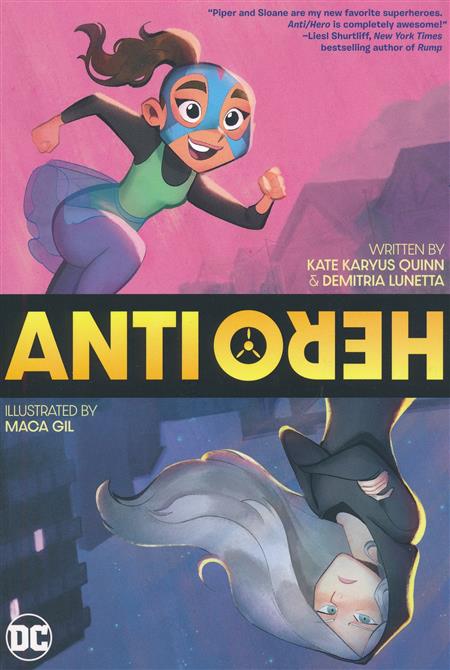 Piper Pájaro and Sloane MacBrute are two 13-year-old girls with very different lives but very similar secrets. Popular, outgoing Piper is strong-like, ripping-the-doors-off-cars strong. She longs to be a superhero, even if she tends to leave massive messes in her wake. Sloane, on the other hand, is snarky and super-smart. Like, evil-genius smart. To help her family, she has to put those smarts to use for her villainous grandfather. When a mission to steal an experimental technological device brings the two girls face to face with each other, the device sparks-and the two girls switch bodies! Now they must live in each other's shoes as they figure out a way to switch back. Anti/Hero is a story that explores what makes a hero, how one can find friendship where it's unexpected, and what it means to walk in another person's shoes...literally! Authors Kate Karyus Quinn (Another Little Piece, The Show Must Go On) and Demitria Lunetta (The Fade, Bad Blood) make their graphic novel debut alongside artist Maca Gil and introduce two new and exciting DC characters!