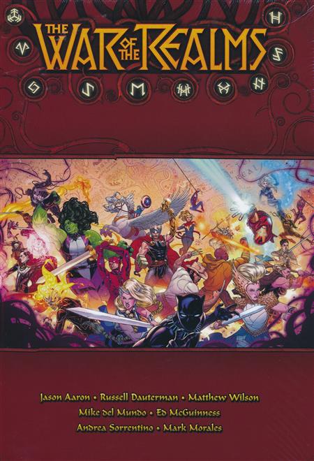 The Ten Realms have all fallen to Malekith and his army - except one. Now, at last, Midgard burns! All hell breaks loose in New York City as Malekith and his allies begin their assault - and with Thor trapped in the land of the Frost Giants, Earth's forces are overwhelmed! What can possibly stop the diabolical Dark Elf and his army? Spider-Man, Captain America, the Punisher, Ghost Rider, Blade, Hulk and more join the fray as Jason Aaron's epic THOR saga reaches a crescendo that explodes across the Marvel Universe! Featuring all of Aaron's WAR OF THE REALMS stories in one legendary hardcover - including The War of the Realms (2019) #1-#6, War of the Realms Omega (2019) #1, War of the Realms: War Scrolls (2019) #1-#3, The War of the Realms Strikeforce: The Land of the Giants (2019) #1, War of the Realms Strikeforce: The Dark Elf Realm (2019) #1, The War of the Realms Strikeforce: The War Avengers (2019) #1, Giant-Man (2019) #1-#3, The War of the Realms: Journey Into Mystery (2019) #1-#5, Spider-#Man & the League of Realms (2019) #1-#3, The War of the Realms: The Punisher (2019) #1-#3, War of the Realms: Uncanny X-#Men (2019) #1-#3, The War of the Realms: New Agents of Atlas (2019) #1-#4, Asgardians of the Galaxy (2018) #8-#10, Tony Stark: Iron Man (2018) #12-#13, Venom (2018) #13-#15, Thor (2018) #8-#16, Avengers (2018) #18-#20, Captain Marvel (2019) #6-#7, Champions (2019) #5-#6, Deadpool (2018) #13-#14, Fantastic Four (2018) #10, Moon Girl and Devil Dinosaur (2016) #43, The Superior Spider-#Man (2019) #7-#8, and The Unbeatable Squirrel Girl (2015) #43-#46.